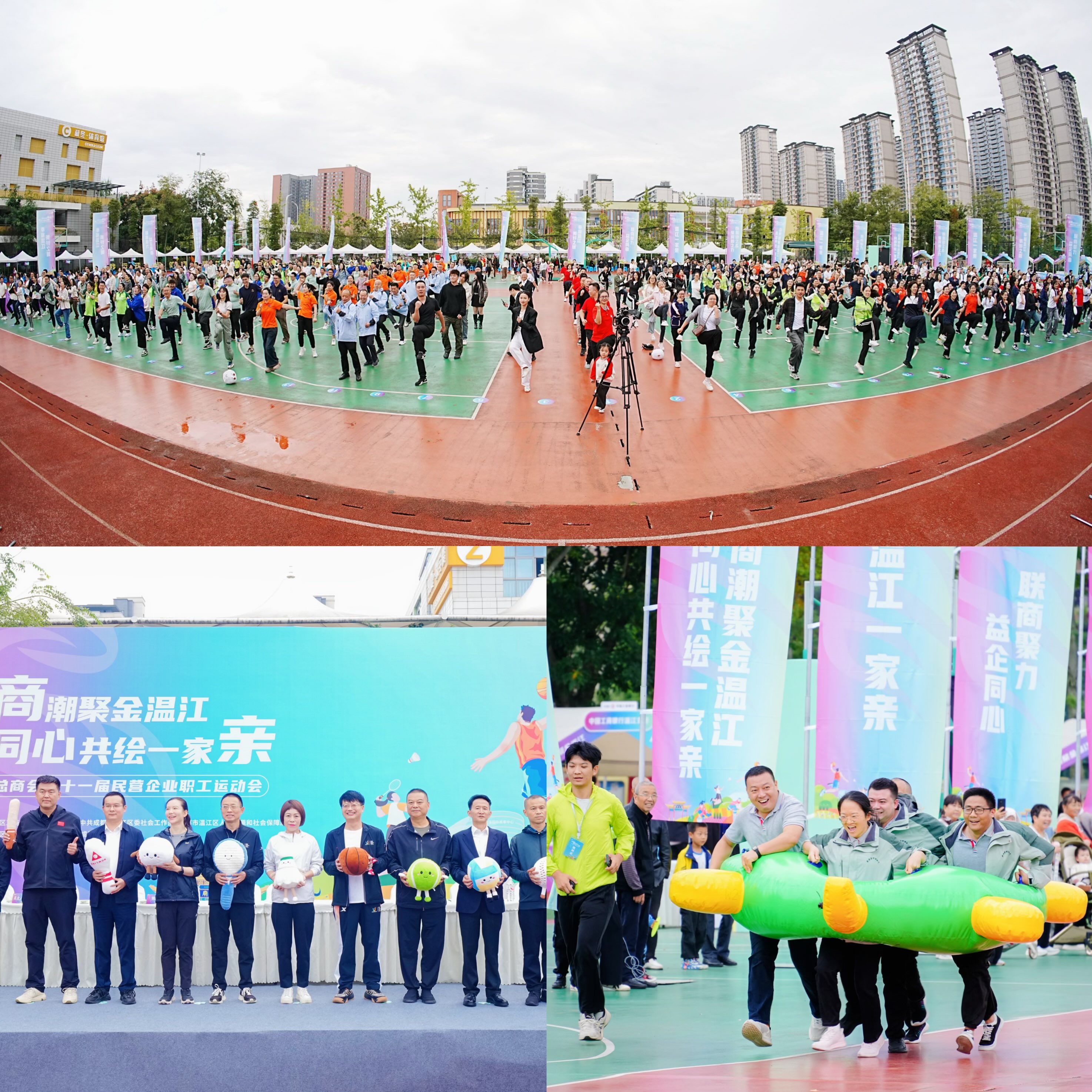 无需传统展位布局,摒弃刻板商务洽谈模式,在温江区花都小学留炼运动场,一场别具一格的“超级推介会”正伴随运动激情同步开展。10月18日,温江区第十一届民营企业职工运动会拉开帷幕。与往届相比,本届运动会赛场之外,企业宣传栏、产品体验区、互动直播间共同构成活力十足的“民企风采走廊”,让赛事活动焕发出产业融合与商业机遇的全新活力。